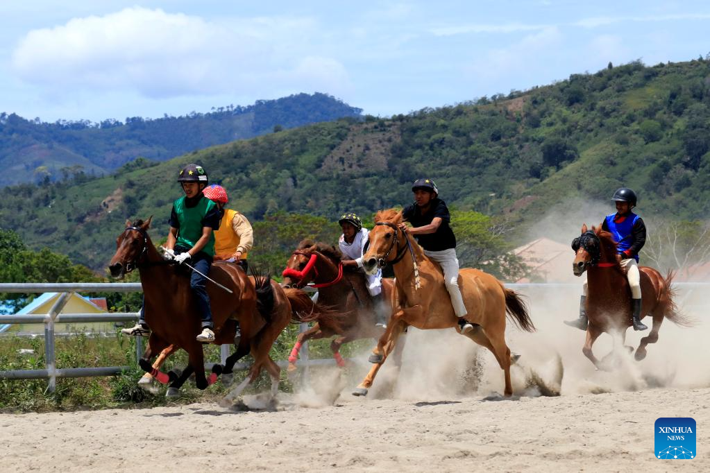 Teenage jockeys compete during a traditional horse race in Takengon, Aceh Province, Indonesia, Aug. 26, 2025. (Photo by Yulham/Xinhua)