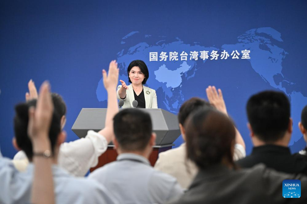 Zhu Fenglian, spokesperson for the State Council Taiwan Affairs Office, attends a regular press conference in Beijing, capital of China, Aug. 27, 2025. (Xinhua/Chen Yehua)