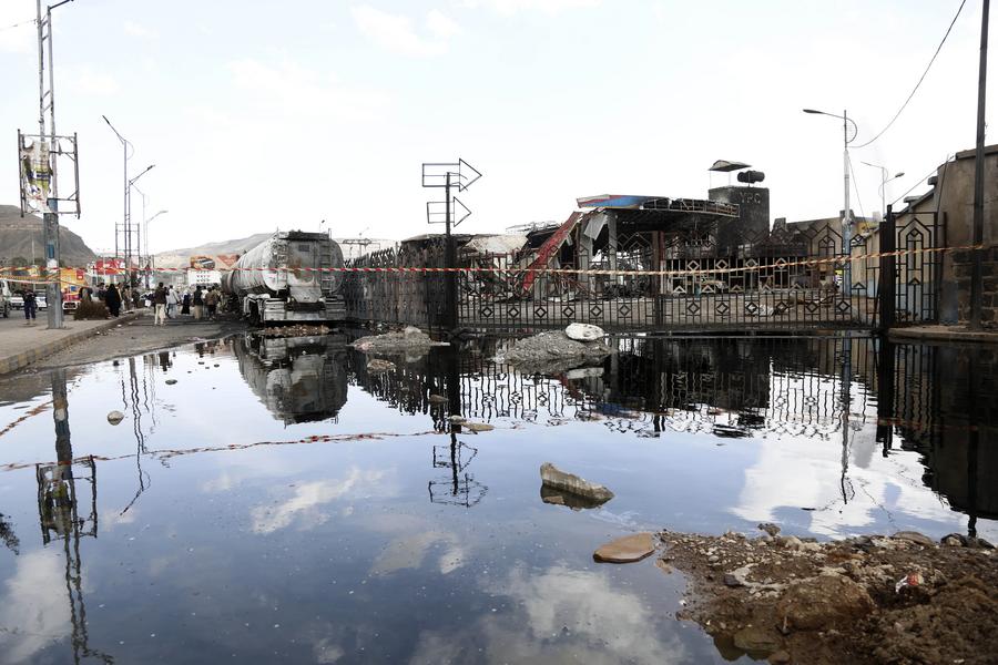 People inspect a destroyed gasoline station after it was struck by Israeli airstrikes on Sunday, in Sanaa, Yemen, Aug. 25, 2025. (Photo by Mohammed Mohammed/Xinhua)A police car is parked at a destroyed gasoline station after it was struck by Israeli airstrikes on Sunday, in Sanaa, Yemen, Aug. 25, 2025. (Photo by Mohammed Mohammed/Xinhua)■People inspect a destroyed gasoline station after it was struck by Israeli airstrikes on Sunday, in Sanaa, Yemen, Aug. 25, 2025. (Photo by Mohammed Mohammed/Xinhua)■