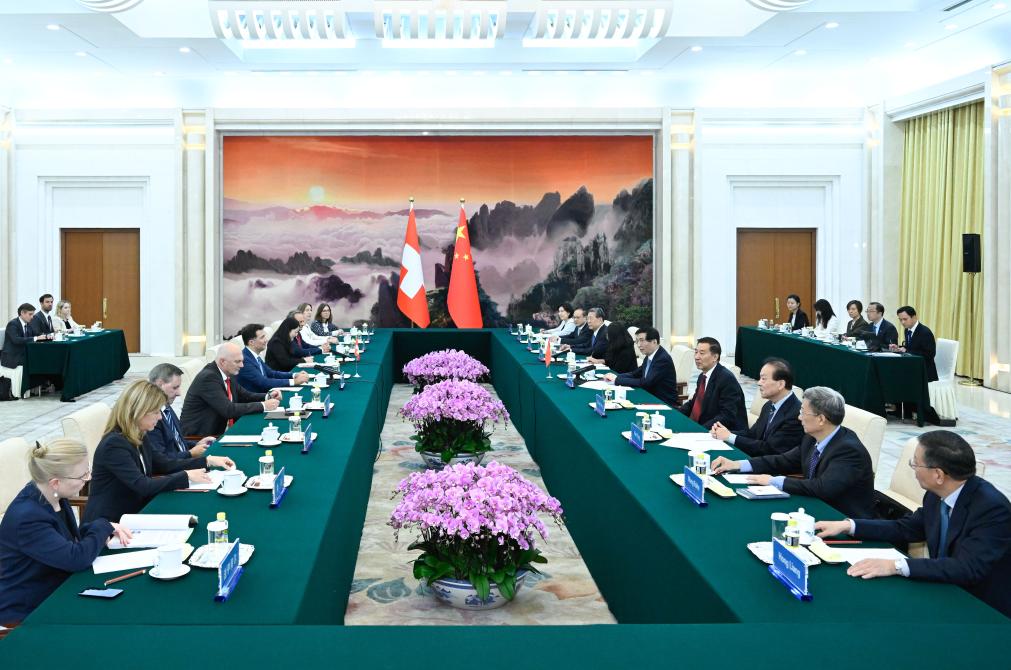 He said Switzerland adheres to the one-China policy, and hopes to deepen practical cooperation, accelerate negotiations on an upgrade of the free trade agreement, and jointly safeguard multilateralism as well as world peace and stability.