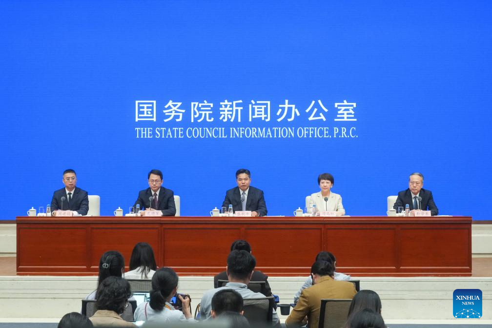 A press conference on development of trade in services and preparations for the 2025 China International Fair for Trade in Services (CIFTIS) is held by the State Council Information Office (SCIO) in Beijing, capital of China, Aug. 27, 2025. (Xinhua/Yin Gang)