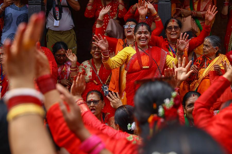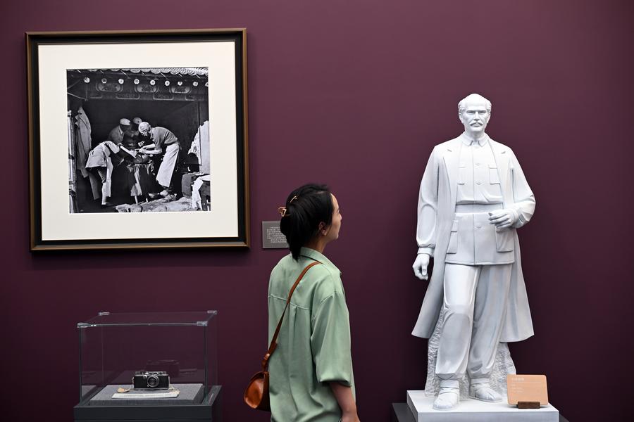An aerial drone photo taken on Aug. 25, 2025 shows a light show along the Haihe River in north China's Tianjin. Shanghai Cooperation Organization (SCO) Summit 2025 will be held here from Aug. 31 to Sept. 1. (Photo by Du Penghui/Xinhua)Researchers applaud to celebrate the successful data acquisition at a control room of the Jiangmen Underground Neutrino Observatory (JUNO) in Jiangmen, south China's Guangdong Province, Aug. 26, 2025. The world's largest transparent spherical detector began operation in China on Tuesday, making it the world's first operational ultra-large scientific facility dedicated to neutrino research with ultra-high precision. Having completed the filling of its 20,000-tonne liquid scintillator detector, JUNO in Guangdong began taking data after more than a decade of preparation and construction. (Photo by Liu Yuexiang/Xinhua)A set of floral installation is pictured at Jianguomen in Beijing, capital of China, Aug. 26, 2025. Ten sets of floral installations along Chang'an Avenue marking the 80th anniversary of the victory in the Chinese People's War of Resistance Against Japanese Aggression and the World Anti-Fascist War have been completed. (Xinhua/Ju Huanzong)A visitor views a sculpture of the Canadian surgeon Norman Bethune, who led his medical team to China in 1938 to help Chinese people fight against Japanese invaders and sacrificed his life in November 1939, at an art exhibition highlighting the Chinese People's War of Resistance Against Japanese Aggression in Beijing, capital of China, Aug. 26, 2025. China's national news agency, Xinhua, on Tuesday opened an art exhibition highlighting the Chinese People's War of Resistance Against Japanese Aggression. (Xinhua/Jin Liangkuai)People perform wedding custom of Tujia ethnic group at a scenic area in Dazhou City, southwest China's Sichuan Province, Aug. 26, 2025. Various activities are held across the country for the upcoming traditional Qixi Festival, or Chinese Valentine's Day, which will fall on Aug. 29 this year. (Photo by Deng Liangkui/Xinhua)An aerial drone photo taken on Aug. 25, 2025 shows the world's first ultra zero-carbon building, the headquarters of EV charging pile network operator TELD New Energy, in Qingdao, east China's Shandong Province. Equipped with cutting-edge high-tech solutions to achieve 100 percent green energy substitution, the building was put into operation on Aug. 24 in Qingdao. (Photo by Zhang Jingang/Xinhua)Women celebrate the Teej Festival at the Pashupatinath Temple in Kathmandu, Nepal, Aug. 26, 2025. During the festival, married women fast and pray for good health and longevity of their husbands and unmarried women pray for marrying ideal husbands. (Photo by Sulav Shrestha/Xinhua)Chinese expert Li Guiqiang (L) gives instructions on vegetable cultivation at the China-Ethiopia Addis Ababa Agricultural Technology Demonstration and Training Center in Addis Ababa, Ethiopia, on Aug. 20, 2025. The 4th batch of the Chinese experts for agricultural collaboration with Ethiopia arrived in Addis Ababa on August 23, 2024. They carried out research, training, demonstrations, and poverty reduction projects in animal husbandry, horticulture, edible fungi and Juncao, agricultural machinery, and crop cultivation to support Ethiopia's agricultural development and strengthen China-Ethiopia agricultural cooperation. (Xinhua/Han Xu)This photo taken on Aug. 27, 2025 shows morning glow at the Opera House in Sydney, Australia. (Xinhua/Ma Ping)Players of China pose for photos after the Preliminary Phase Pool F match between China and Colombia at the Volleyball Women's World Championship in Chiang Mai, Thailand, Aug. 25, 2025. (Xinhua/Hou Zhaokang)■