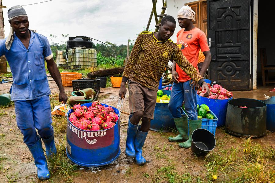 YAOUNDE, Aug. 28 (Xinhua) -- On a 10-hectare fruit farm in the Souza locality of Cameroon's Littoral Region, a gentle rain softens the earth and coats trees in shimmering droplets.