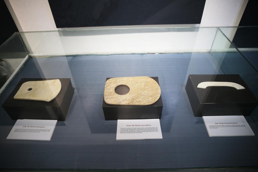 Through 50 display panels marking the 50th anniversary of the establishment of diplomatic relations between China and Bangladesh and 38 sets of jade replicas, including jade eagle, jade dragon, and jade figurine, the exhibition presented a comprehensive picture of the rich historical heritage and profound cultural significance of the Lingjiatan site.
