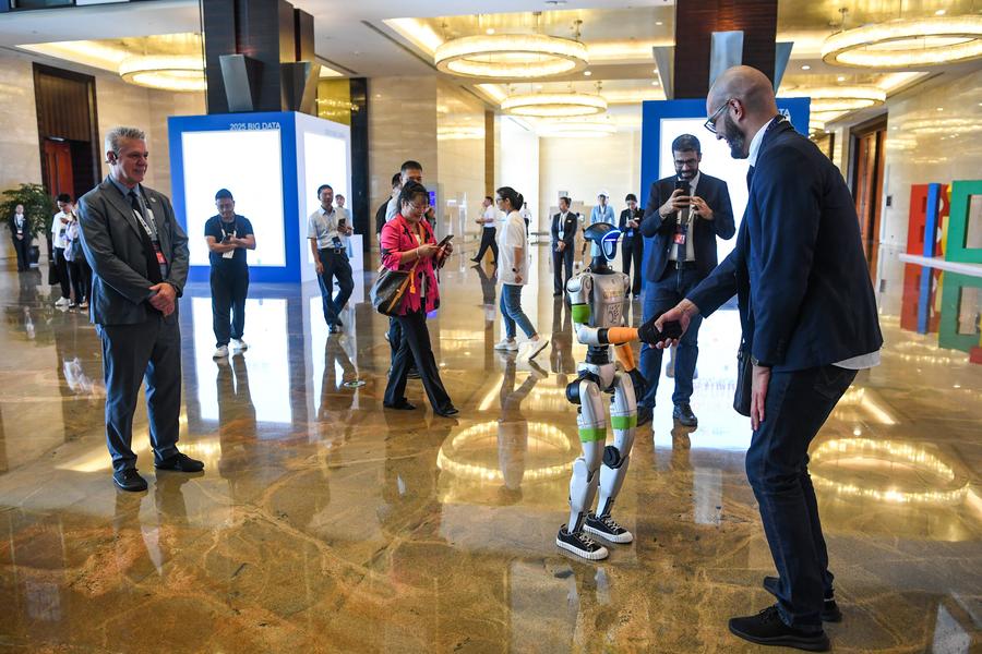An exhibitor talks to a visitor at the China International Big Data Industry Expo 2025 in Guiyang, southwest China's Guizhou Province, Aug. 28, 2025. (Xinhua/Tao Liang)People pose for photos outside the venue of the China International Big Data Industry Expo 2025 in Guiyang, southwest China's Guizhou Province, Aug. 28, 2025. (Xinhua/Tao Liang)People walk into the venue of the China International Big Data Industry Expo 2025 in Guiyang, southwest China's Guizhou Province, Aug. 28, 2025. (Xinhua/Tao Liang)An exhibitor introduces an AI model to the audience at the China International Big Data Industry Expo 2025 in Guiyang, southwest China's Guizhou Province, Aug. 28, 2025. (Xinhua/Tao Liang)A woman walks past an installation marking the China International Big Data Industry Expo 2025 in Guiyang, southwest China's Guizhou Province, Aug. 28, 2025. (Xinhua/Yang Wenbin)A man takes photos of an installation marking the China International Big Data Industry Expo 2025 in Guiyang, southwest China's Guizhou Province, Aug. 28, 2025. (Xinhua/Yang Wenbin)A participant interacts with a robot at the site of the opening ceremony of the China International Big Data Industry Expo 2025 in Guiyang, southwest China's Guizhou Province, Aug. 28, 2025. (Xinhua/Yang Wenbin)Guests attend the opening ceremony of the China International Big Data Industry Expo 2025 in Guiyang, southwest China's Guizhou Province, Aug. 28, 2025. (Xinhua/Yang Wenbin)A participant shakes hands with a robot at the site of the opening ceremony of the China International Big Data Industry Expo 2025 in Guiyang, southwest China's Guizhou Province, Aug. 28, 2025. (Xinhua/Yang Wenbin)■
