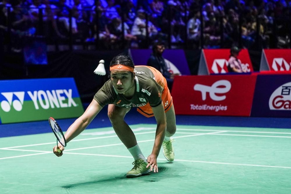 Yamaguchi Akane of Japan competes during the women's singles second round match between Yamaguchi Akane of Japan and Kim Ga Eun of South Korea at the BWF World Championships 2025 in Paris, France, Aug. 27, 2025. (Xinhua/Zhang Fan)