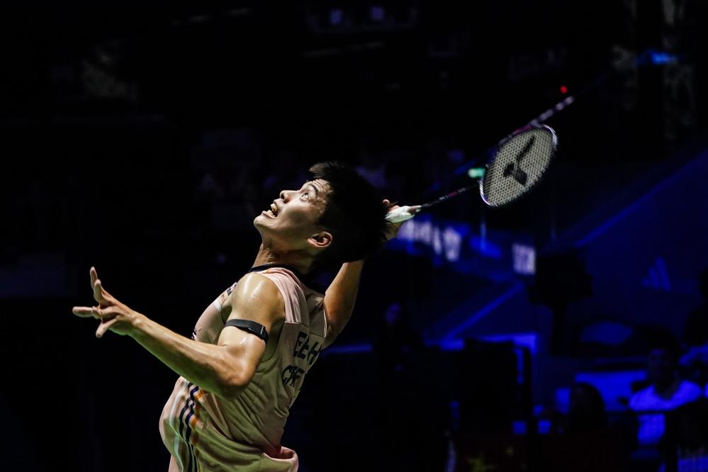 Lee Chia Hao competes during the men's singles second round match between Weng Hongyang of China and Lee Chia Hao of Chinese Taipei at the BWF World Championships 2025 in Paris, France, Aug. 27, 2025. (Xinhua/Peng Ziyang)