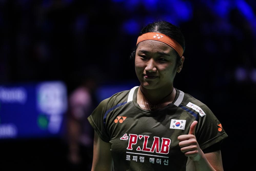 An Se Young celebrates after winning the women's singles second round match between An Se Young of South Korea and Yvonne Li of Germany at the BWF World Championships 2025 in Paris, France, Aug. 27, 2025. (Xinhua/Peng Ziyang)