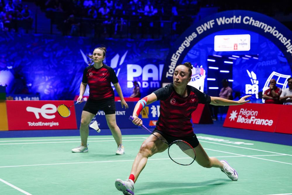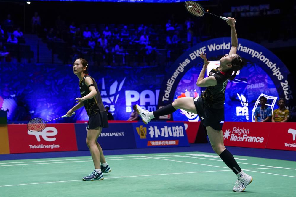 Bengisu Ercetin/Nazlican Inci (R) compete during the women's doubles second round match between Matsuyama Nami/Shida Chiharu of Japan and Bengisu Ercetin/Nazlican Inci of Türkiye at the BWF World Championships 2025 in Paris, France, Aug. 27, 2025. (Xinhua/Peng Ziyang)