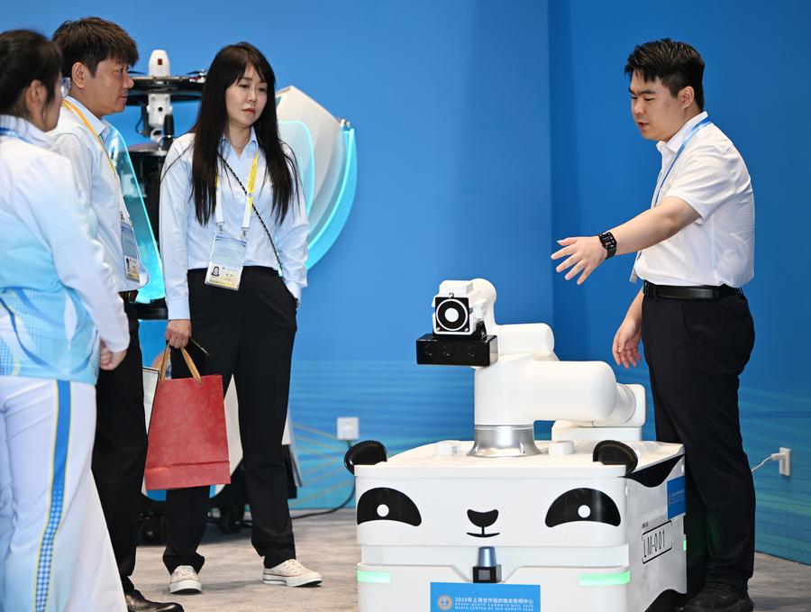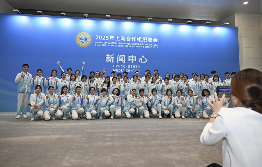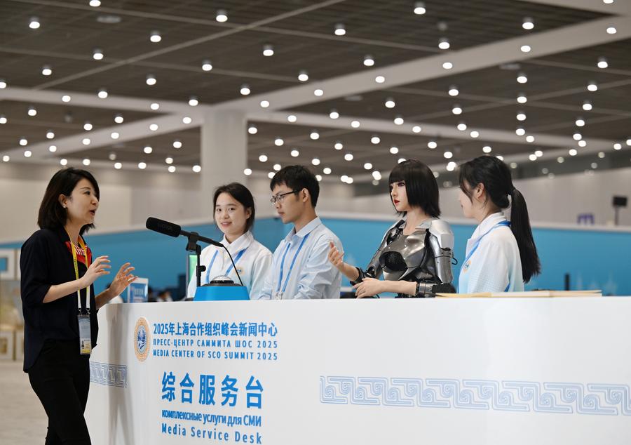 This photo taken on Aug. 28, 2025 shows a view of the media center for the upcoming Shanghai Cooperation Organization (SCO) Summit 2025 in north China's Tianjin. (Xinhua/Sun Fanyue)A journalist (1st L) talks with a humanoid robot (2nd R) at the media center for the upcoming Shanghai Cooperation Organization (SCO) Summit 2025 in north China's Tianjin on Aug. 28, 2025. (Xinhua/Zhao Zishuo)Journalists work at the media center for the upcoming Shanghai Cooperation Organization (SCO) Summit 2025 in north China's Tianjin on Aug. 28, 2025. (Xinhua/Zhao Zishuo)Journalists visit the interactive area at the media center for the upcoming Shanghai Cooperation Organization (SCO) Summit 2025 in north China's Tianjin on Aug. 28, 2025. (Xinhua/Sun Fanyue)Volunteers pose for a group photo at the media center for the upcoming Shanghai Cooperation Organization (SCO) Summit 2025 in north China's Tianjin on Aug. 28, 2025. (Xinhua/Sun Fanyue)Journalists work at the media center for the upcoming Shanghai Cooperation Organization (SCO) Summit 2025 in north China's Tianjin on Aug. 28, 2025. (Xinhua/Zhao Zishuo)Staff members work at the media center for the upcoming Shanghai Cooperation Organization (SCO) Summit 2025 in north China's Tianjin on Aug. 28, 2025. (Xinhua/Sun Fanyue)A journalist works at the media center for the upcoming Shanghai Cooperation Organization (SCO) Summit 2025 in north China's Tianjin on Aug. 28, 2025. (Xinhua/Zhao Zishuo)A staff member (1st L) makes a lacquer fan at the media center for the upcoming Shanghai Cooperation Organization (SCO) Summit 2025 in north China's Tianjin on Aug. 28, 2025. (Xinhua/Li Ran)A volunteer (L) talks with a staff member at the media center for the upcoming Shanghai Cooperation Organization (SCO) Summit 2025 in north China's Tianjin on Aug. 28, 2025. (Xinhua/Zhao Zishuo)Staff members check the power supply of the media center for the upcoming Shanghai Cooperation Organization (SCO) Summit 2025 in north China's Tianjin on Aug. 28, 2025. (Xinhua/Sun Fanyue)Staff members work at the media center for the upcoming Shanghai Cooperation Organization (SCO) Summit 2025 in north China's Tianjin on Aug. 28, 2025. (Xinhua/Sun Fanyue)A staff member (R) introduces a robot at the media center for the upcoming Shanghai Cooperation Organization (SCO) Summit 2025 in north China's Tianjin on Aug. 28, 2025. (Xinhua/Li Ran)■