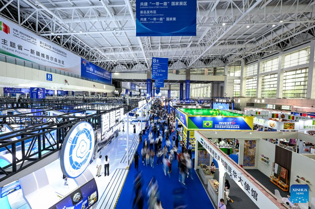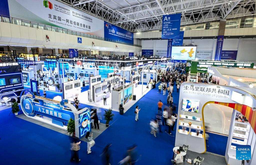 People visit the seventh China-Arab States Expo in Yinchuan, northwest China's Ningxia Hui Autonomous Region, Aug. 28, 2025. The seventh China-Arab States Expo kicked off on Thursday in Yinchuan, capital of northwest China's Ningxia Hui Autonomous Region, attracting more than 7,600 participants and over 2,200 enterprises and institutions from 75 countries and regions. (Xinhua/Feng Kaihua)