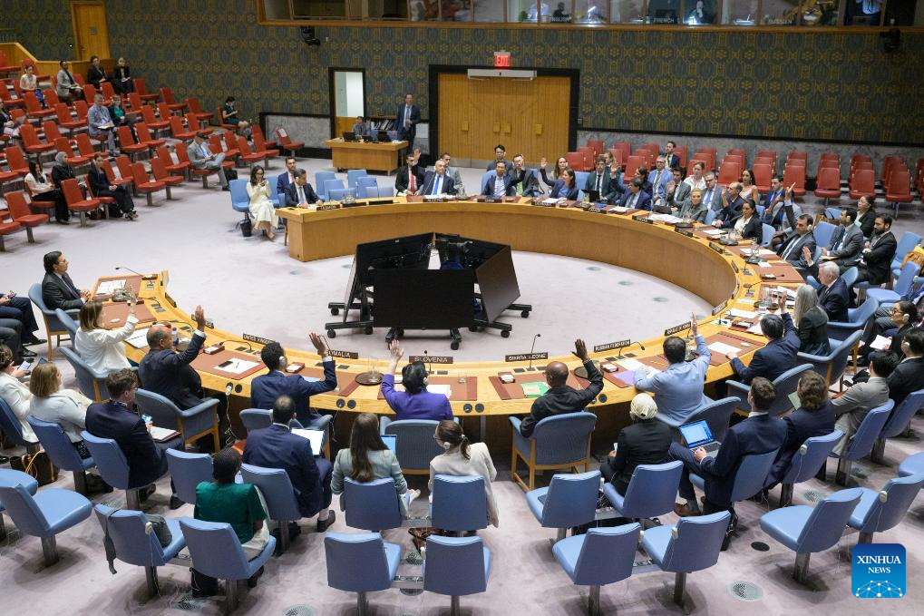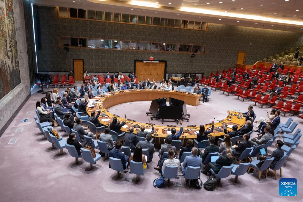 Representatives vote on a draft resolution during a Security Council meeting at the UN headquarters in New York, Aug. 28, 2025. The Security Council on Thursday extended the mandate of the UN Interim Force in Lebanon (UNIFIL) for the final time before its withdrawal. (Manuel Elias/UN Photo/Handout via Xinhua)