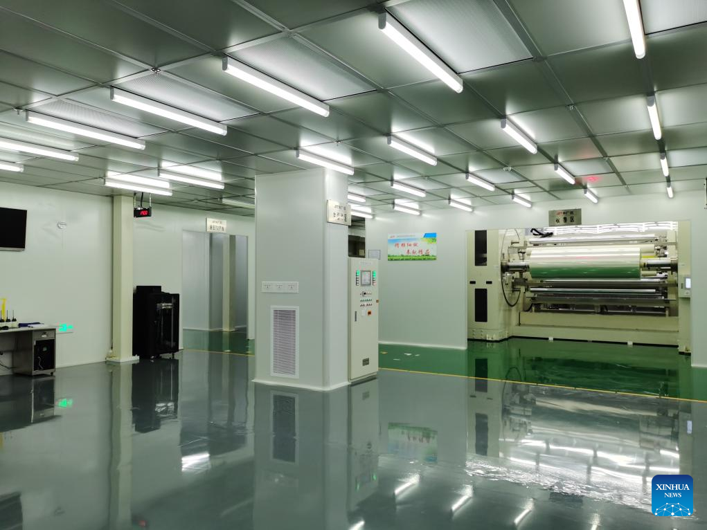 This file photo taken on Sept. 10, 2024 shows the dust-free workshop of Taihu Jinzhang Technology Co., Ltd. in Taihu County, east China's Anhui Province. (Xinhua)