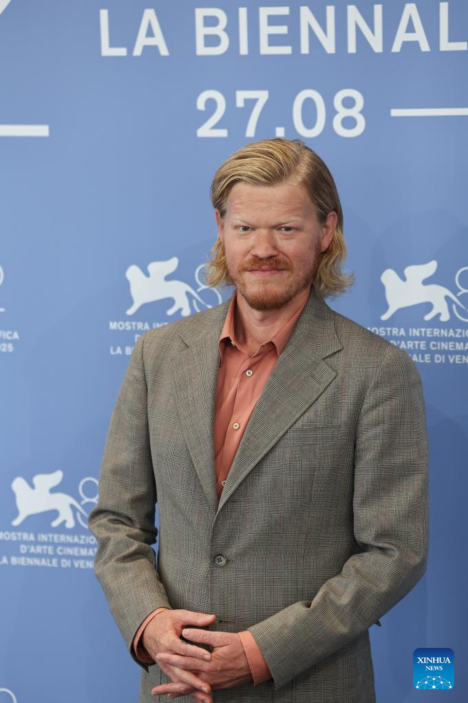 Jesse Plemons of the film "Bugonia" poses for the photocall during the 82nd Venice Film Festival in Venice, Italy, Aug. 28, 2025. (Xinhua/Li Jing)