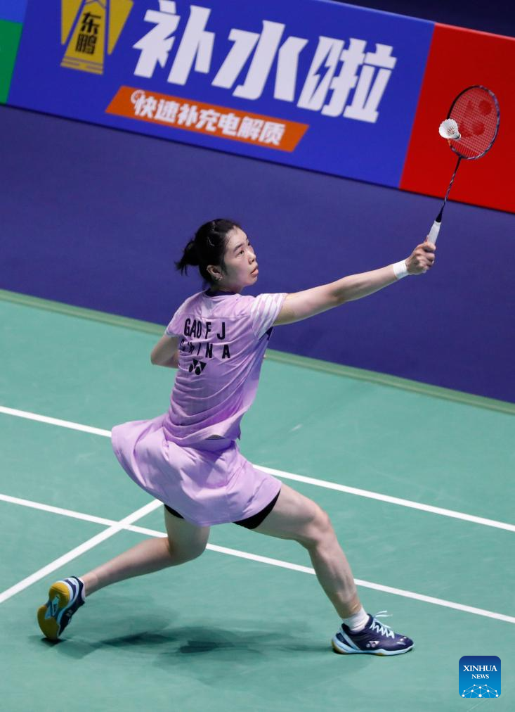 Gao Fangjie of China competes during the women's singles third round match between Han Yue of China and Gao Fangjie of China at the BWF World Championships 2025 in Paris, France, Aug. 28, 2025. (Xinhua/Zhang Fan)