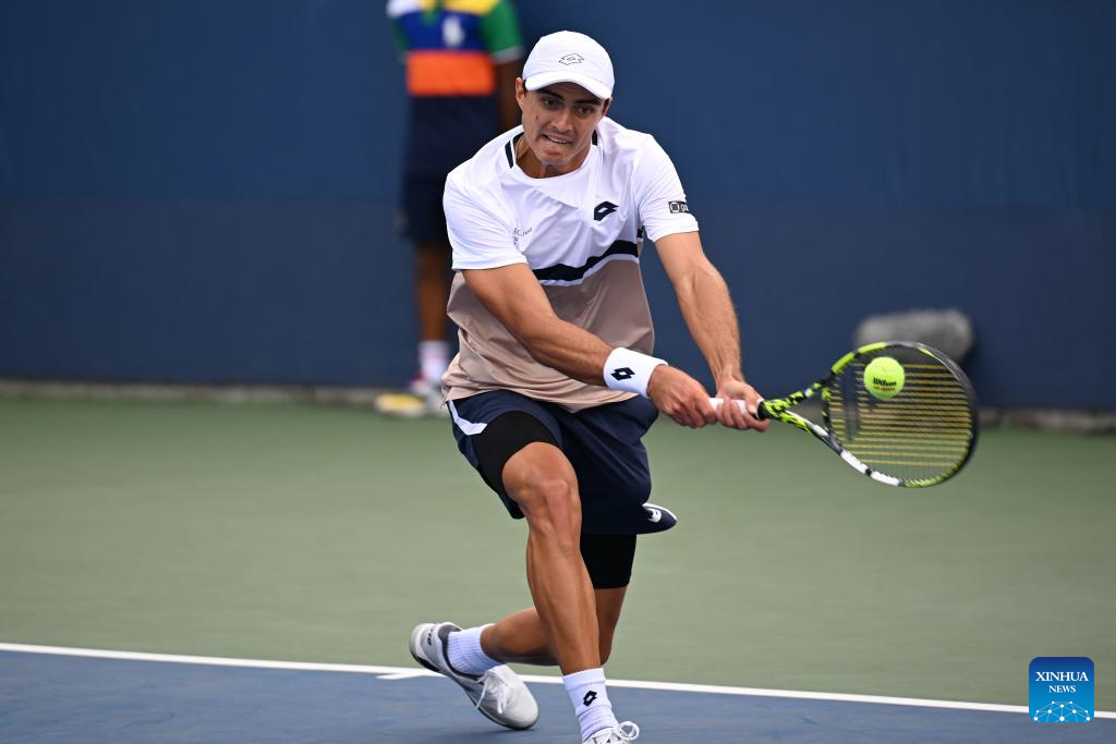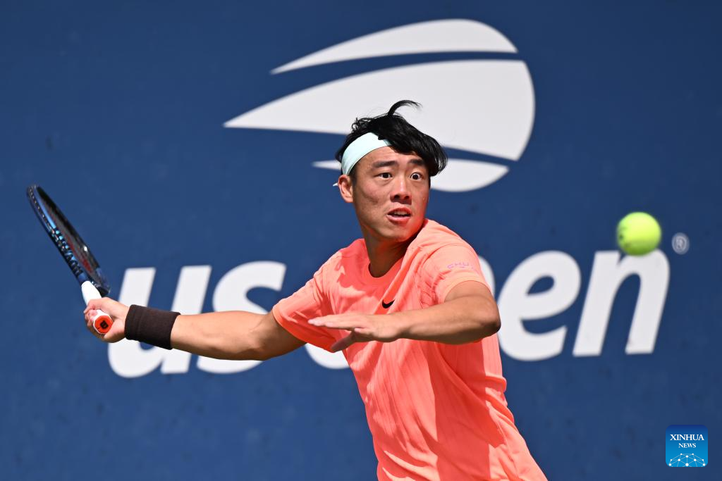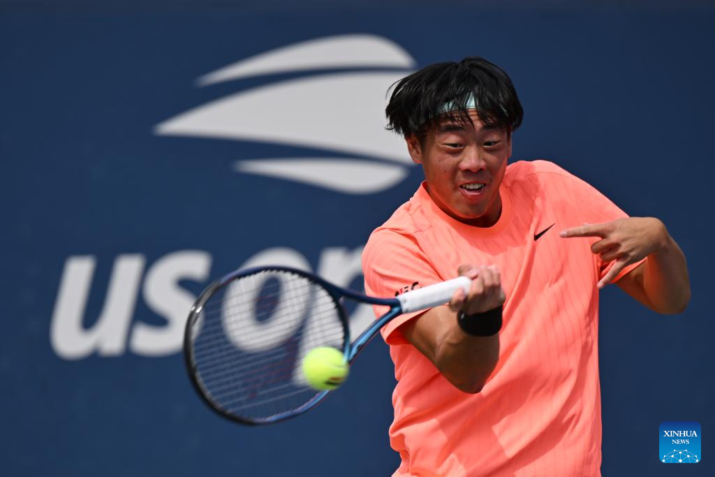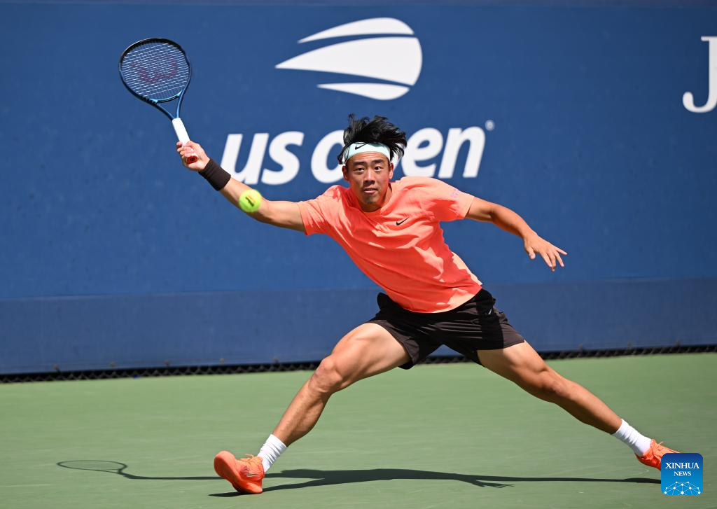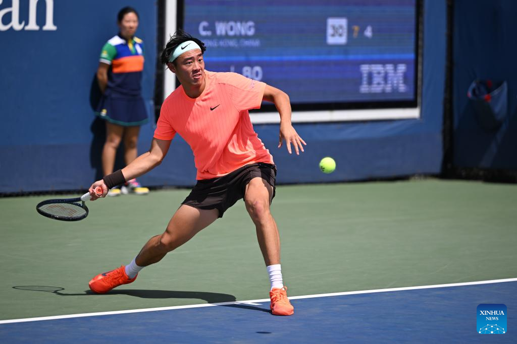 Coleman Wong of China's Hong Kong hits a return during the men's singles second round match between Coleman Wong of China's Hong Kong and Adam Walton of Australia at the 2025 US Open tennis championships in New York, the United States, Aug. 28, 2025. (Xinhua/Li Rui)