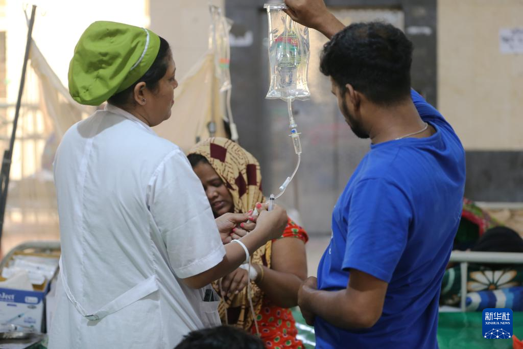 Patients infected with dengue receive treatment at a hospital in Dhaka, Bangladesh, Aug. 28, 2025. The June-September monsoon period is the peak season for dengue fever in Bangladesh. (Photo by Habibur Rahman/Xinhua)
