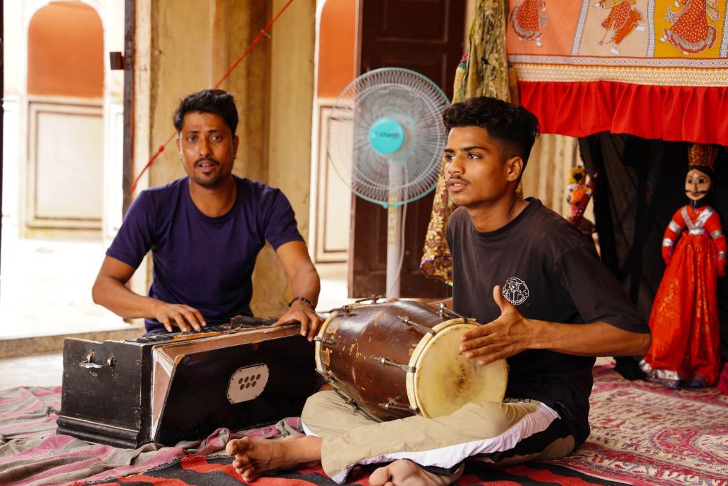 Artists perform traditional Indian instrument in Jaipur, India, Aug. 5, 2024. India boasts a diverse and rich culture, attracting global attention with its historical heritage, Bollywood film industry, yoga culture, and more. (Xinhua/Chen Dongshu)