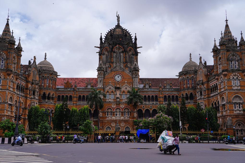 This photo taken on Aug. 24, 2025 shows an exterior view of the Chhatrapati Shivaji Terminus (CST) railway station in Mumbai, India. India boasts a diverse and rich culture, attracting global attention with its historical heritage, Bollywood film industry, yoga culture, and more. (Xinhua/Wu Yue)