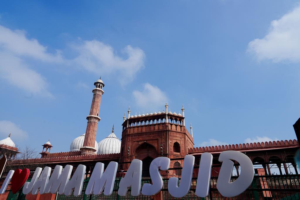This photo taken on Aug. 21, 2025 shows an exterior view of Jama Masjid (grand mosque) in New Delhi, India. India boasts a diverse and rich culture, attracting global attention with its historical heritage, Bollywood film industry, yoga culture, and more. (Xinhua/Wu Yue)