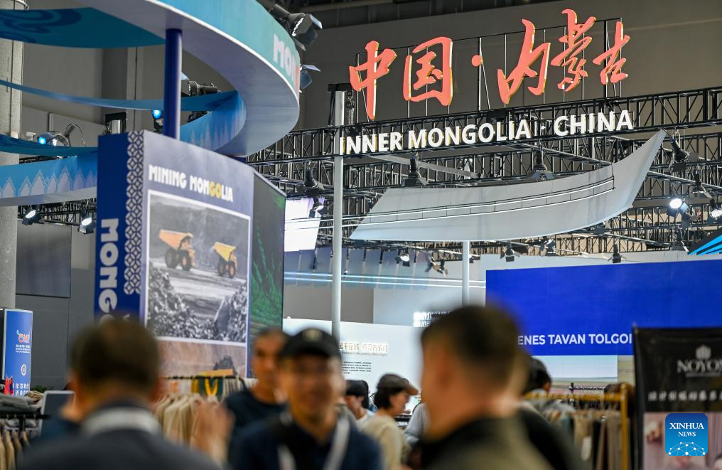 People visit the 5th China-Mongolia Expo in Hohhot, north China's Inner Mongolia Autonomous Region, Aug. 29, 2025. The ongoing 5th China-Mongolia Expo, which kicked off on Aug. 25, has attracted over 1,500 exhibitors from home and abroad. (Xinhua/Lian Zhen)