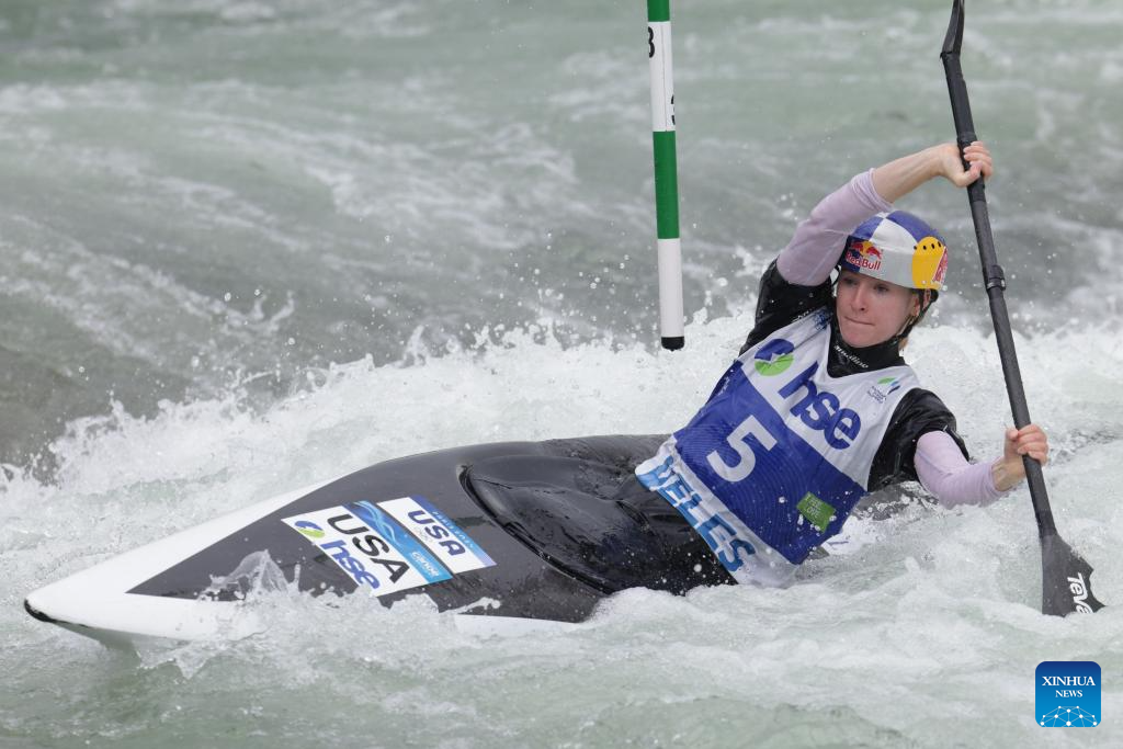 Evy Leibfarth of the United States competes during the Women's Kayak final at 2025 ICF Canoe Slalom World Cup Tacen in Ljubljana, Slovenia, Aug. 29, 2025. (Photo by Zeljko Stevanic/Xinhua)