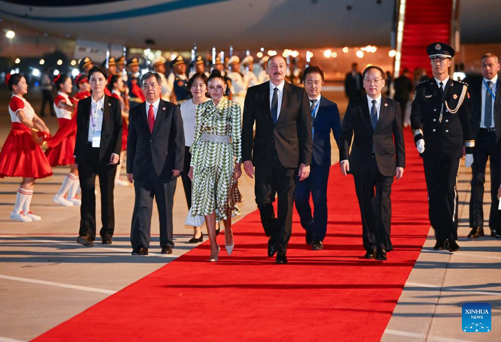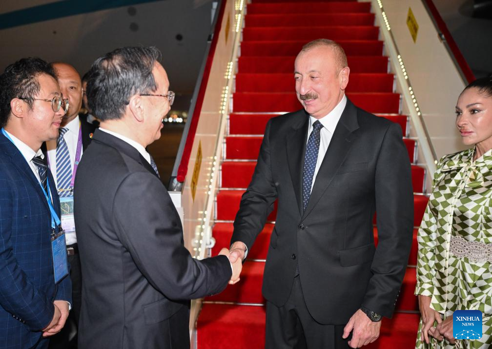 Azerbaijani President Ilham Aliyev arrives for the Shanghai Cooperation Organization (SCO) Summit 2025 in Tianjin, north China, Aug. 30, 2025. (Xinhua/Li Ran)