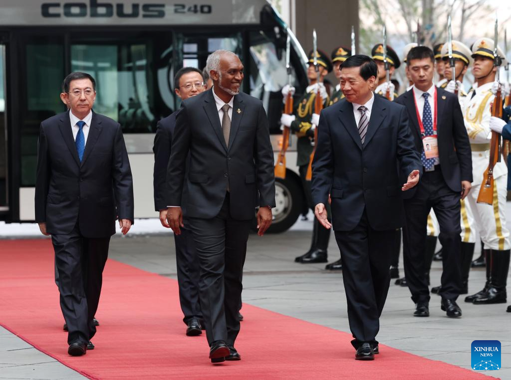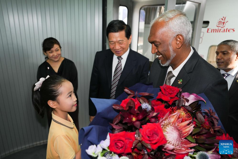 Maldivian President Mohamed Muizzu arrives for the Shanghai Cooperation Organization (SCO) Summit 2025 in Beijing, capital of China, Aug. 30, 2025. (Xinhua/Zhang Chenlin)
