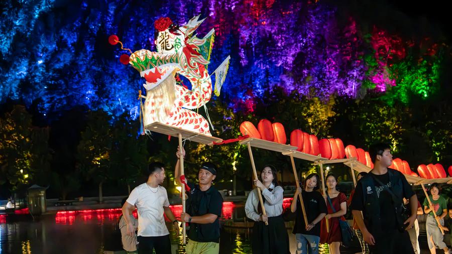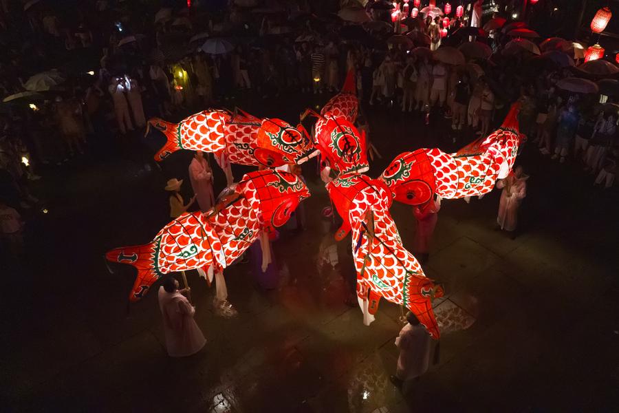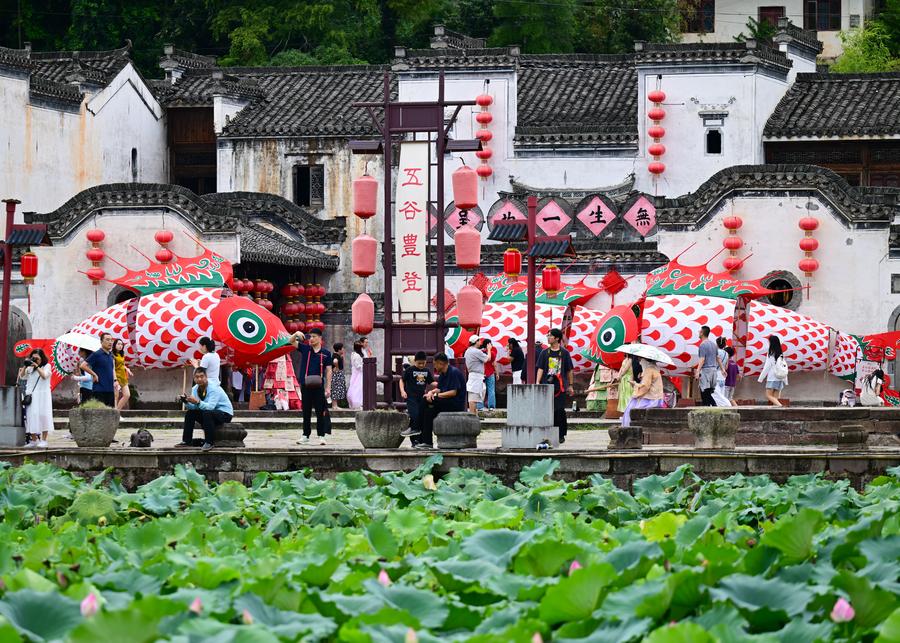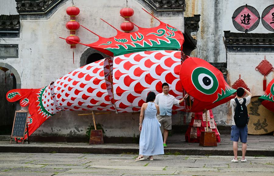 A performance of the wooden-bench dragon dance is staged in Xidi Village of Yixian County in Huangshan City, east China's Anhui Province on Aug. 23, 2025. (Photo by Wang Cheng/Xinhua)An aerial drone photo taken on Aug. 23, 2025 shows a performance of the wooden-bench dragon dance in Xidi Village of Yixian County in Huangshan City, east China's Anhui Province.(Photo by Wang Cheng/Xinhua)Tourists watch the fish-shaped lanterns in Chengkan Village, Huizhou District, Huangshan City of east China's Anhui Province, Aug. 21, 2025. (Xinhua/Zhou Mu)Tourists watch a parade of the fish-shaped lanterns in Xiuning County of Huangshan City, east China's Anhui Province, Aug. 27, 2025. (Xinhua/Zhou Mu)Tourists take pictures in front of a fish-shaped lantern in Chengkan Village, Huizhou District, Huangshan City of east China's Anhui Province, Aug. 21, 2025. (Xinhua/Zhou Mu)A performance of the molten iron fireworks is staged in Xiuning County of Huangshan City, east China's Anhui Province, Aug. 27, 2025. (Xinhua/Zhou Mu)An aerial drone photo shows a parade of the fish-shaped lanterns in Chengkan Village, Huizhou District, Huangshan City of east China's Anhui Province, Aug. 21, 2025. (Photo by Fan Chengzhu/Xinhua)An aerial drone photo taken on Aug. 23, 2025 shows a performance of the wooden-bench dragon dance in Xidi Village of Yixian County in Huangshan City, east China's Anhui Province.(Photo by Zhang Sheli/Xinhua)■