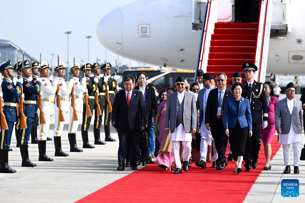Nepali Prime Minister KP Sharma Oli arrives for the Shanghai Cooperation Organization (SCO) Summit 2025 in Tianjin, north China, Aug. 30, 2025. (Xinhua/Zhao Zishuo)
