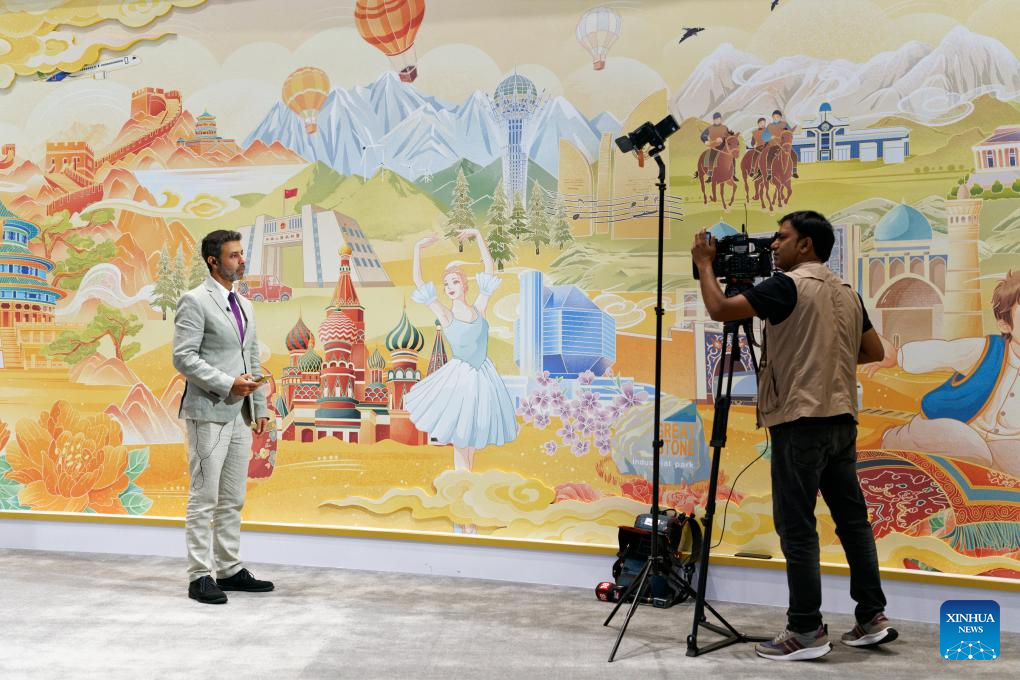 This photo taken on Aug. 30, 2025 shows a view of the media center for the Shanghai Cooperation Organization (SCO) Summit 2025 in north China's Tianjin. The upcoming Shanghai Cooperation Organization (SCO) Tianjin Summit is scheduled for Aug. 31 and Sept. 1 in north China's port city of Tianjin. (Xinhua/Sun Fanyue)