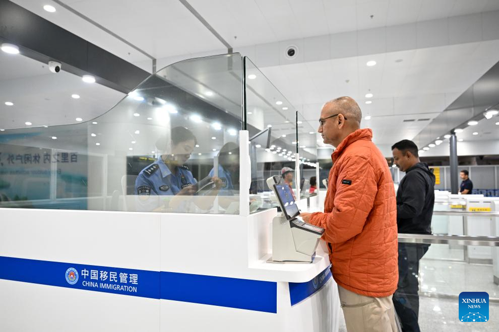 Border officers assist foreign reporters with entry procedures at the Tianjin Binhai International Airport in north China's Tianjin, Aug. 27, 2025. The upcoming Shanghai Cooperation Organization (SCO) Tianjin Summit is scheduled for Aug. 31 and Sept. 1 in north China's port city of Tianjin. (Xinhua/Sun Fanyue)