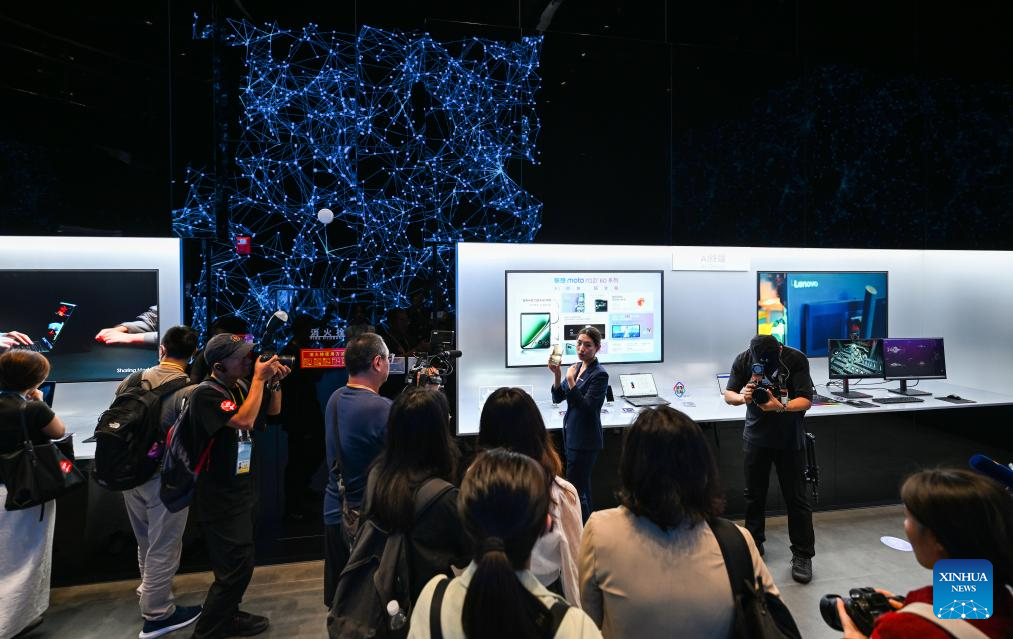 Journalists visit the Lenovo Tianjin Innovation Industrial Park in Tianjin, north China, on Aug. 29, 2025. Multiple city visiting events have been arranged in Tianjin by the media center of the Shanghai Cooperation Organization (SCO) Summit 2025 from Aug. 28 to Aug. 30, providing opportunities for Chinese and foreign journalists to learn about distinctive highlights in Tianjin's history and culture, its scientific and technological development, cultural and people-to-people exchanges, as well as other fields during their visits. (Xinhua/Zhao Zishuo)