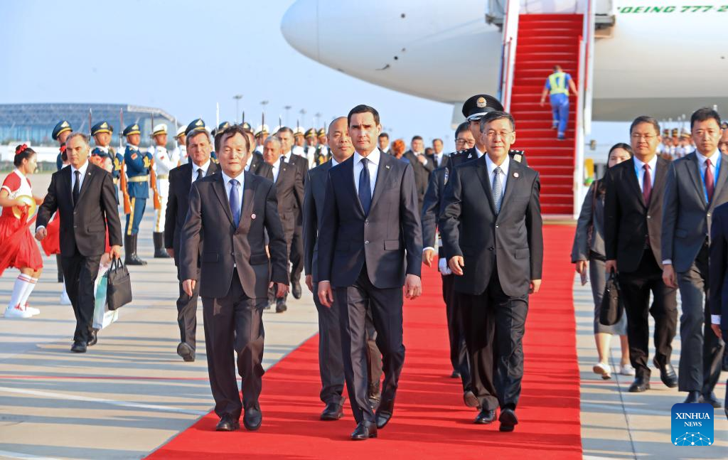 Turkmen President Serdar Berdimuhamedov arrives for the Shanghai Cooperation Organization (SCO) Summit 2025 in Tianjin, north China, Aug. 31, 2025. (Xinhua/Huang Bohan)