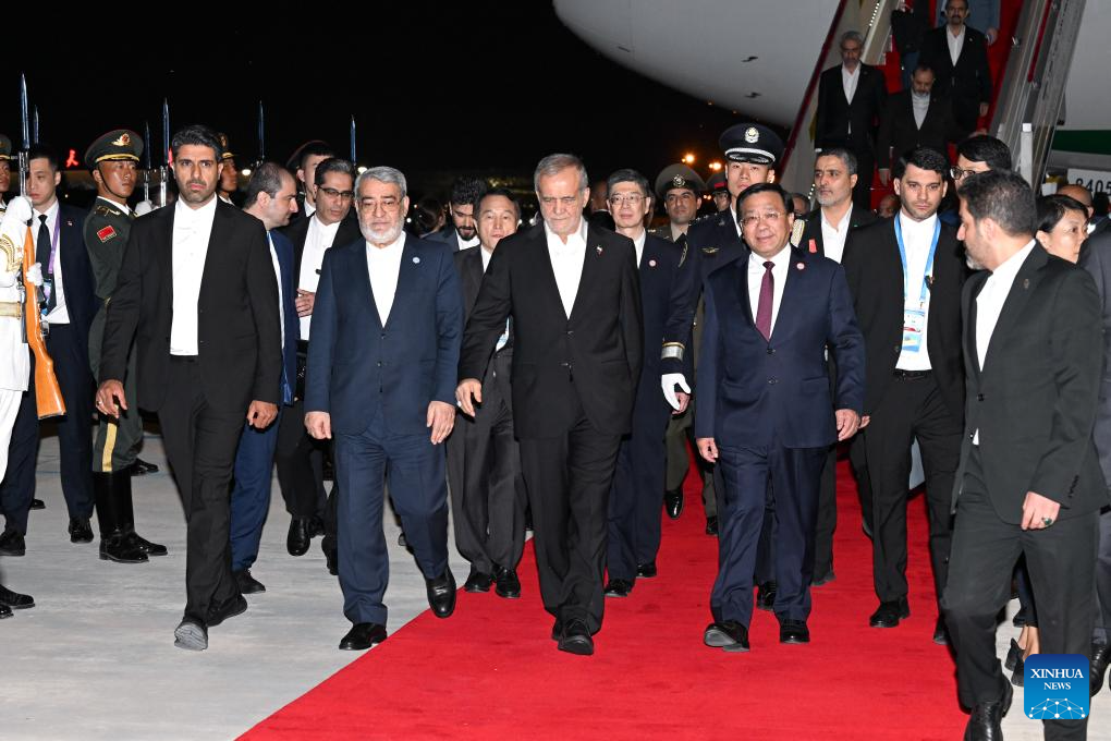 Iran's President Masoud Pezeshkian arrives for the Shanghai Cooperation Organization (SCO) Summit 2025 in Tianjin, north China, Aug. 31, 2025. (Xinhua/Yang Qing)