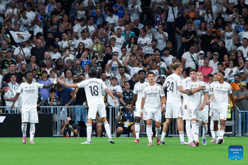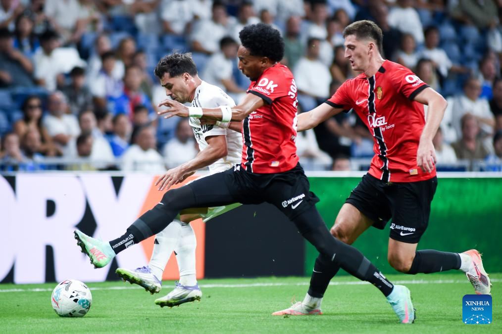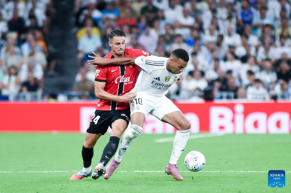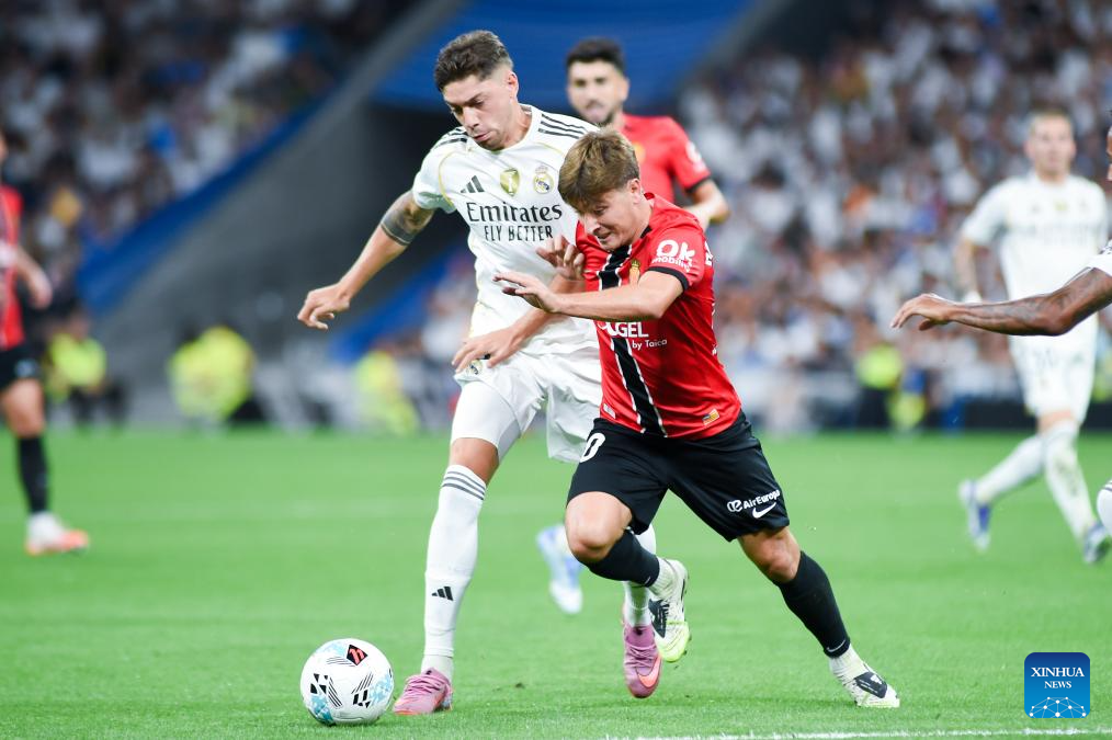 MADRID, Aug. 30 (Xinhua) -- Real Madrid moved to the top of La Liga on Saturday night with a 2-1 win at home to Mallorca.