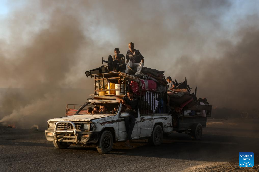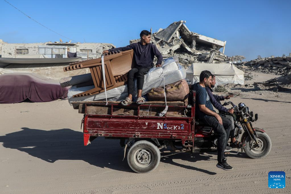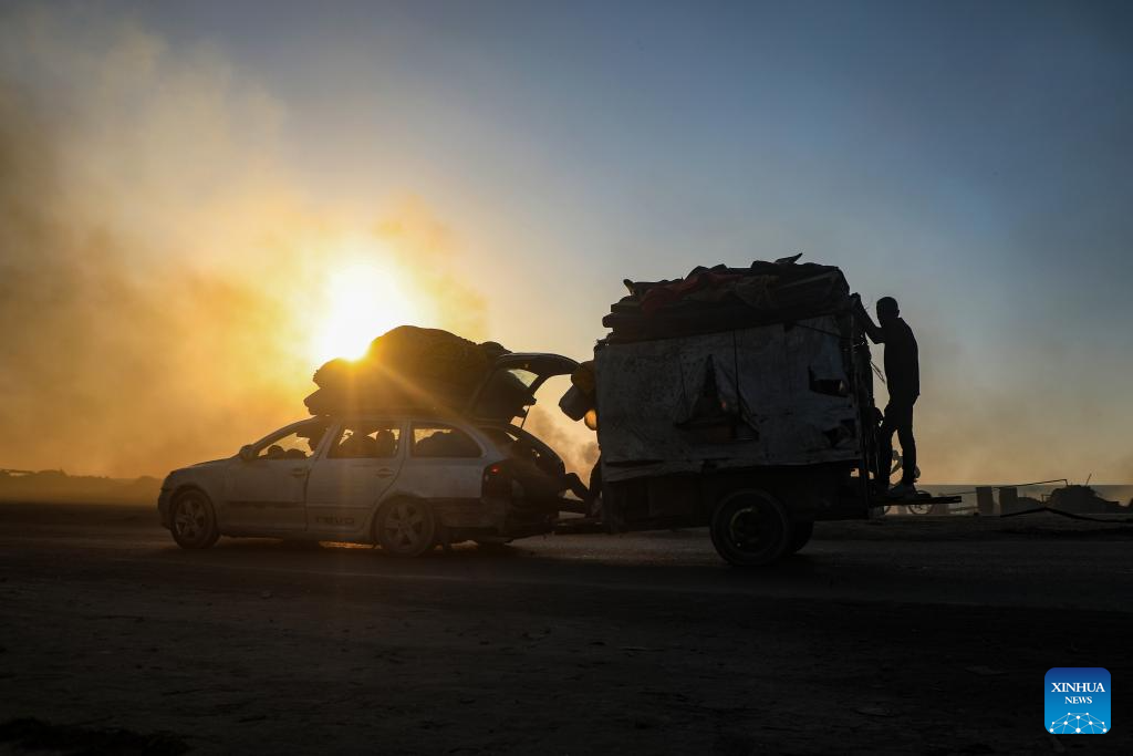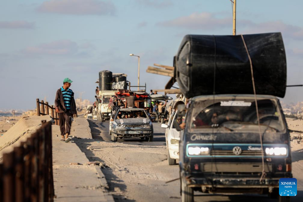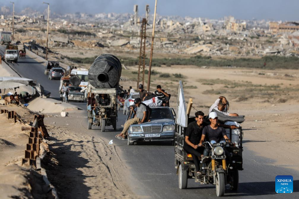 Palestinians fleeing from the north of the Gaza Strip are pictured as they cross the Gaza Valley in the central Gaza Strip, on Aug. 31, 2025. The Israeli army intensified its air and ground attacks on Gaza City on Sunday, aiming to force residents to flee to the central and southern areas of the Gaza Strip, according to Palestinian sources. (Photo by Rizek Abdeljawad/Xinhua)