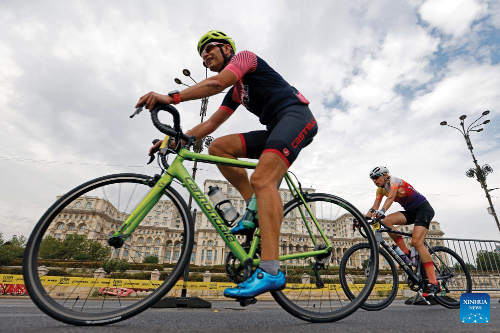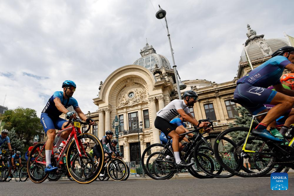 Cyclists compete during the L'Etape Romania by Tour de France cycling race in Bucharest, Romania, Aug. 31, 2025. (Photo by Cristian Cristel/Xinhua)