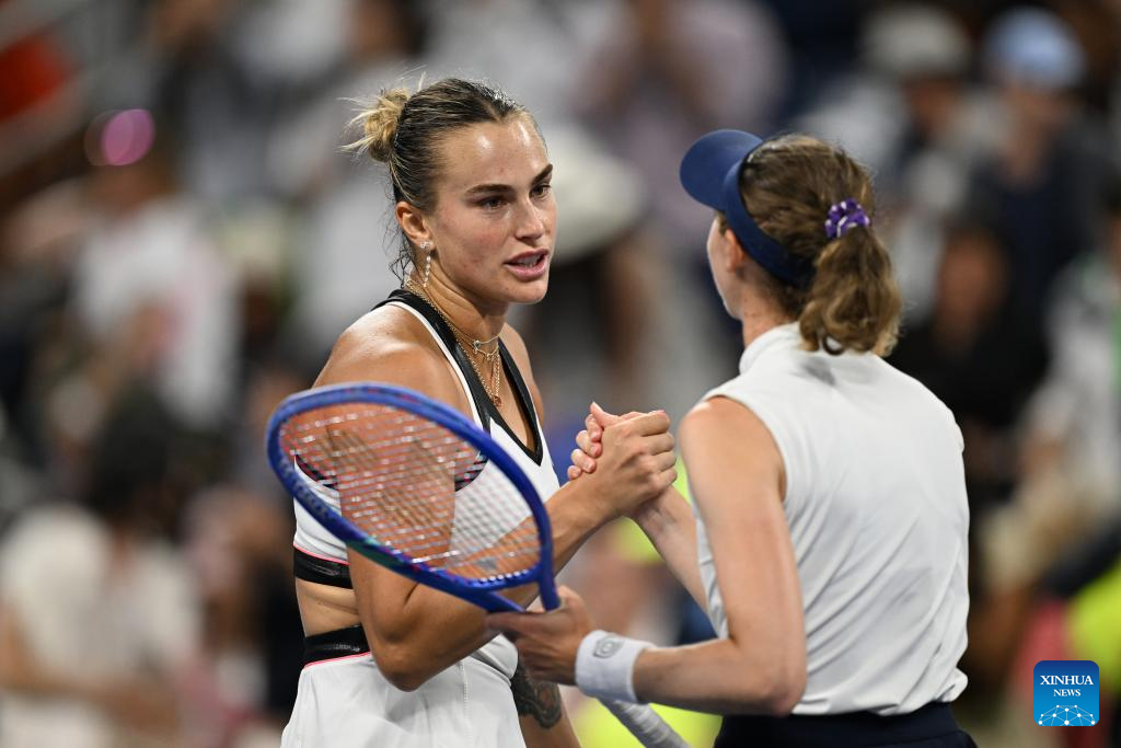 WASHINGTON, Sept. 1 (Xinhua) -- Top-ranked Aryna Sabalenka of Belarus dominated Spain's Cristina Bucsa 6-1, 6-4 to advance into the women's singles quarterfinals, while 38-year-old Novak Djokovic sailed past Germany's Jan-Lennard Struff 6-3, 6-3, 6-2 in the men's singles fourth round at the US Open on Sunday.