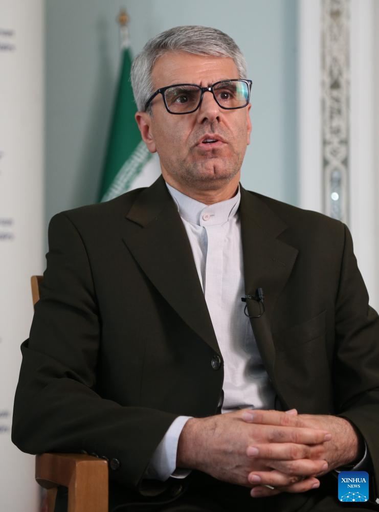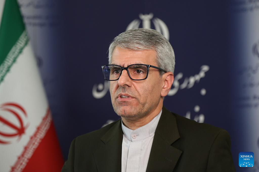 Iranian Foreign Ministry spokesman Esmaeil Baghaei receives an interview with Xinhua News Agency in Tehran, Iran, Aug. 30, 2025.(Xinhua/Shadati)