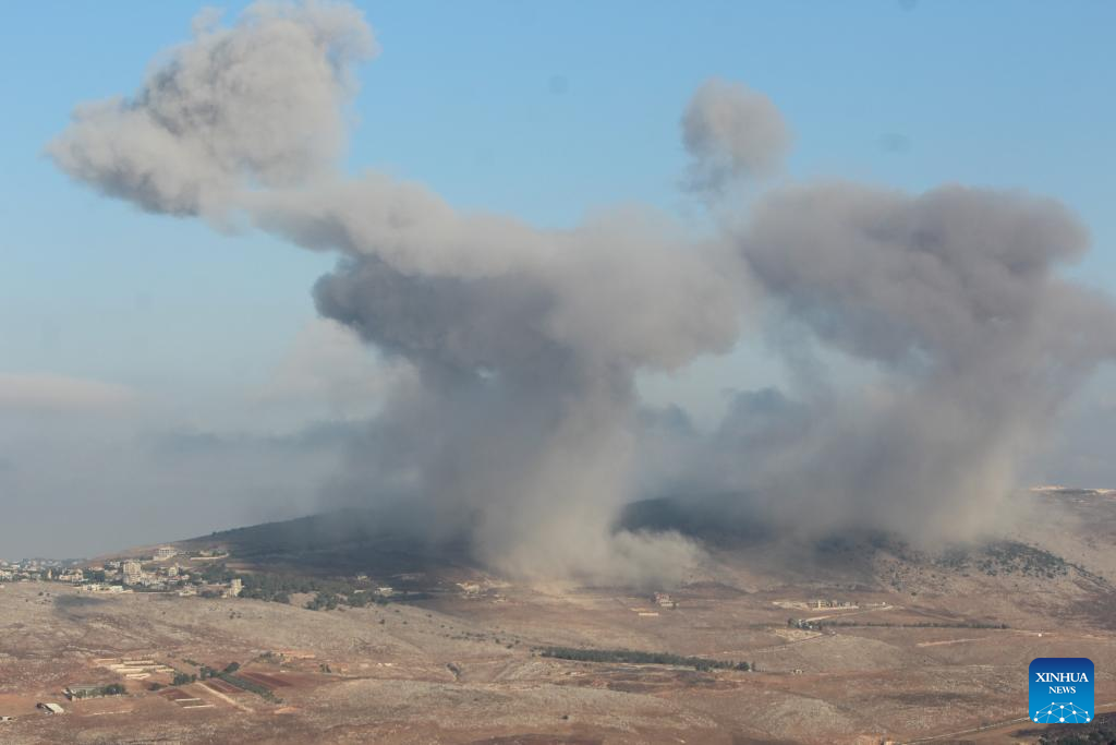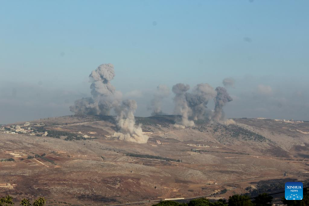 This photo taken on Aug. 31, 2025 shows Israeli airstrikes on the Nabatieh area, southern Lebanon. According to the NNA, the intelligence source, and local eyewitnesses, Israeli drones and warplanes carried out multiple airstrikes across southern Lebanon, including some places deep in the area, targeting Hezbollah military positions "subjected to similar air raids" conducted previously.