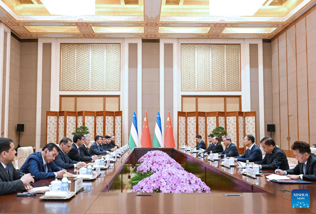Li said that China is ready to further synergize the Belt and Road Initiative with the "Uzbekistan-2030" strategy, continue to leverage the role of the China-Uzbekistan intergovernmental cooperation committee, expand trade and investment, advance the high-quality construction of the China-Kyrgyzstan-Uzbekistan railway project, and deepen cooperation in connectivity, new energy, digital economy, artificial intelligence, modern agriculture and other fields to inject more impetus into the two countries' respective modernization endeavors.