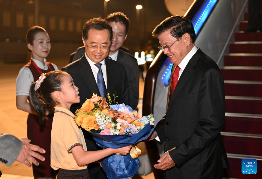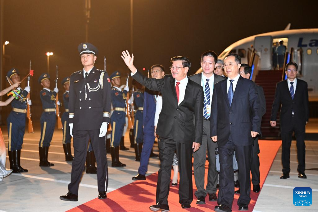 General Secretary of the Lao People's Revolutionary Party Central Committee and Lao President Thongloun Sisoulith arrives in Beijing, capital of China, Sept. 2, 2025, for the commemorations marking the 80th anniversary of the victory in the Chinese People's War of Resistance against Japanese Aggression and the World Anti-Fascist War. (Xinhua/Zhao Zishuo)