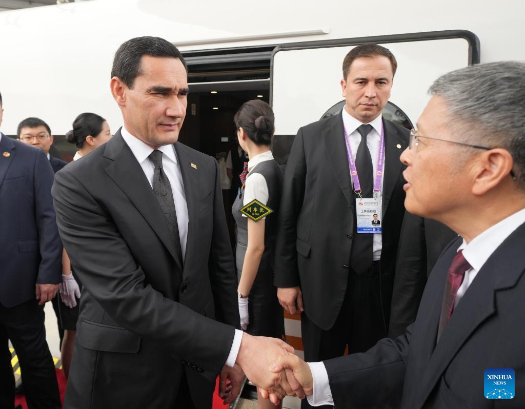 Turkmen President Serdar Berdimuhamedov arrives in Beijing, capital of China, Sept. 2, 2025, for the commemorations marking the 80th anniversary of the victory in the Chinese People's War of Resistance against Japanese Aggression and the World Anti-Fascist War. (Xinhua/Mu Yu)