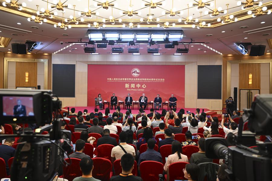 BEIJING, Sept. 2 (Xinhua) -- The press center for the events commemorating the 80th anniversary of the victory in the Chinese People's War of Resistance Against Japanese Aggression and the World Anti-Fascist War held a group interview in Beijing on Tuesday.