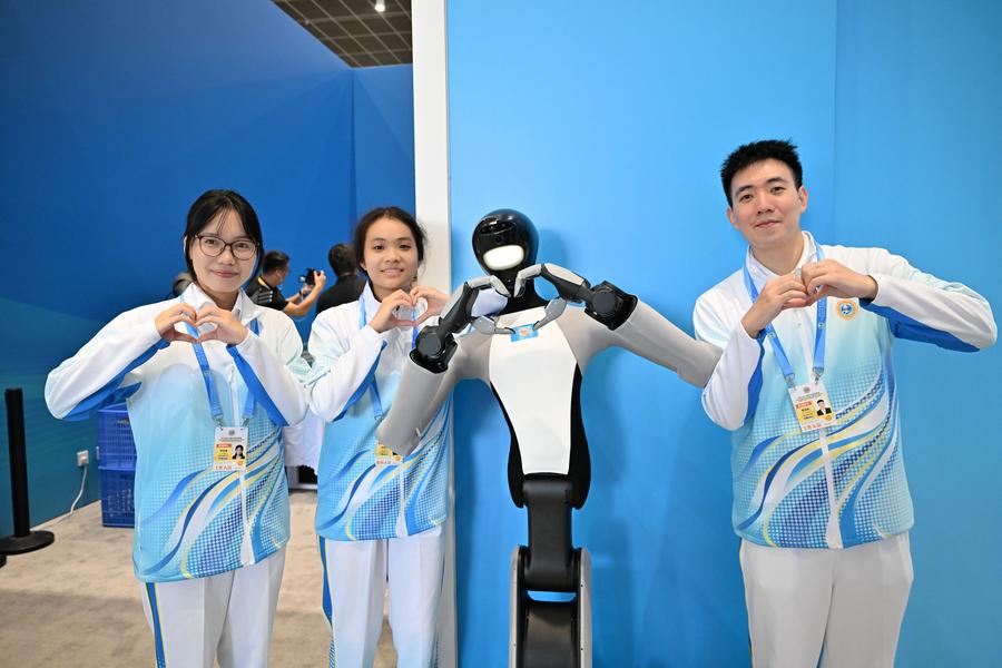 Volunteers gesture for photos with a robot at the media center for the Shanghai Cooperation Organization (SCO) Summit 2025 in north China's Tianjin, on Aug. 30, 2025. The SCO Summit 2025 was held from Aug. 31 to Sept. 1 in Tianjin. A team of nearly 1,000 volunteers from local universities provided various service in areas like diplomatic etiquette, emergency response and language services to support the SCO Summit. (Xinhua/Sun Fanyue)An aerial drone photo taken on Aug. 31, 2025 shows the construction site of Caijiagou grand bridge on the Chongqing-Wanzhou high-speed railway in southwest China's Chongqing Municipality. (Xinhua/Tang Yi)A student arrives at a primary school in Guiyang, southwest China's Guizhou Province, Sept. 1, 2025. The new semester for primary and secondary schools kicked off in many parts of China on Monday. (Xinhua/Tao Liang)A senior resident arrives in wheelchair at a comprehensive elderly care center in Yingmenkou subdistrict of Chengdu, southwest China's Sichuan Province, Sept. 1, 2025. The comprehensive elderly care center covers an area of 1,400 square meters and serves multiple residential communities. Supported by the government and run by enterprise management with social participation, this community-based elderly care complex offers full-time care, daycare, rehabilitation therapies, and professional nursing services. (Xinhua/Jiang Hongjing)Shi Yuqi of China reacts after the men's singles final match against Kunlavut Vitidsarn of Thailand at the BWF World Championships 2025 in Paris, France, Aug. 31, 2025. (Xinhua/Peng Ziyang)Venezuelan Defense Minister Vladimir Padrino Lopez (L) speaks during a press conference held in Caracas, Venezuela, Aug. 31, 2025. Venezuela is prepared for "any attack" from the United States, Padrino Lopez said on Sunday. Venezuela is under a siege that aims to provoke internal chaos and undermine the nation's political leadership, said the defense chief. (Photo by Marcos Salgado/Xinhua)American actress Kim Novak poses with the Golden Lion for Lifetime Achievement trophy at a ceremony during the 82nd Venice Film Festival in Venice, Italy, Sept. 1, 2025. (Xinhua/Li Jing)Palestinians fleeing from the north of the Gaza Strip are pictured as they cross the Gaza Valley in the central Gaza Strip, on Aug. 31, 2025. The Israeli army intensified its air and ground attacks on Gaza City on Sunday, aiming to force residents to flee to the central and southern areas of the Gaza Strip, according to Palestinian sources. (Photo by Rizek Abdeljawad/Xinhua)■