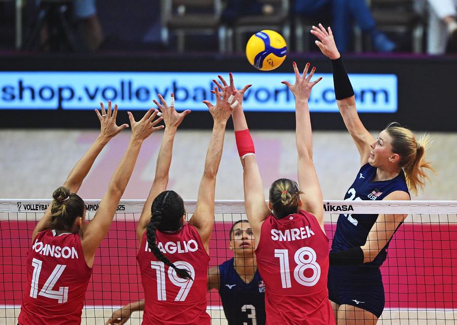 BANGKOK, Sept. 1 (Xinhua) -- World No. 6 United States swept world No. 12 Canada 3-0 here on Monday to meet Turkiye in the quarterfinals of the FIVB Volleyball Women's World Championship.