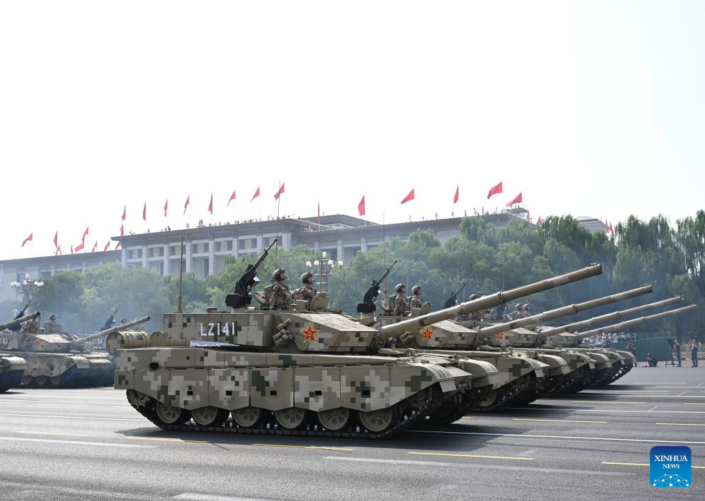 BEIJING, Sept. 3 (Xinhua) -- A ground assault formation consisting of new-generation armored vehicles of the PLA Army, including Type-100 tanks and Type-100 fighting vehicles, passed through Tian'anmen Square. ■