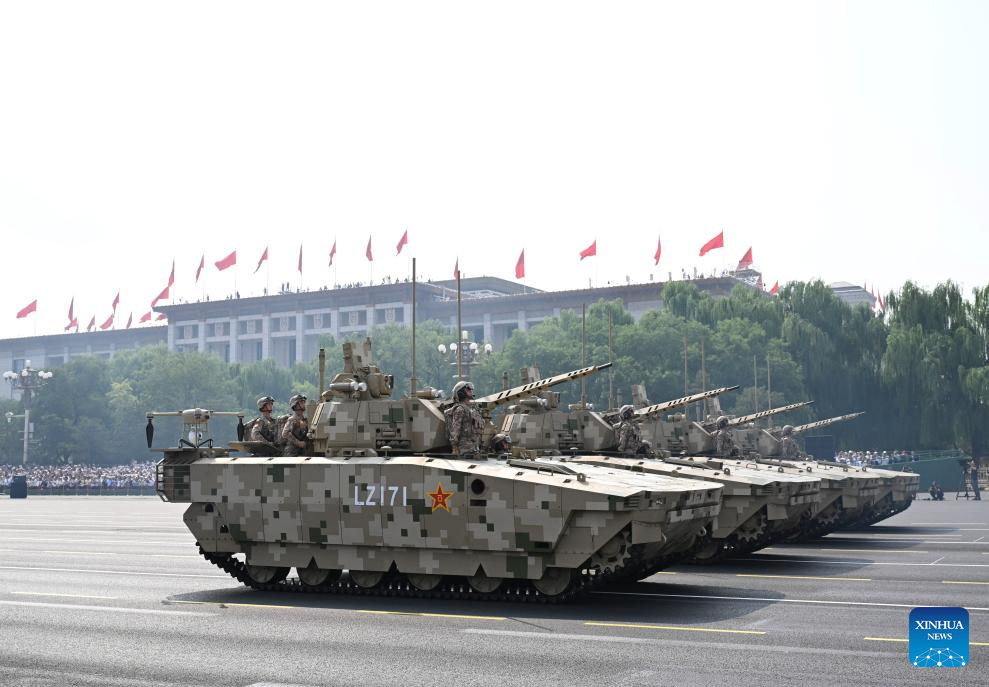The ground assault formation attends a parade during a grand gathering to commemorate the 80th anniversary of the victory in the Chinese People's War of Resistance against Japanese Aggression and the World Anti-Fascist War in Beijing, capital of China, Sept. 3, 2025. (Xinhua/Yang Guanyu)