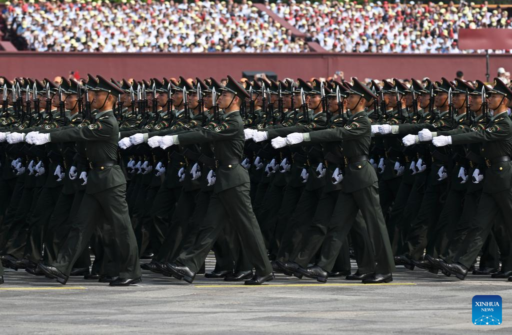The Army formation of the Chinese People's Liberation Army (PLA) attends a parade during a grand gathering to commemorate the 80th anniversary of the victory in the Chinese People's War of Resistance against Japanese Aggression and the World Anti-Fascist War in Beijing, capital of China, Sept. 3, 2025. (Xinhua/Liu Yongzhen)